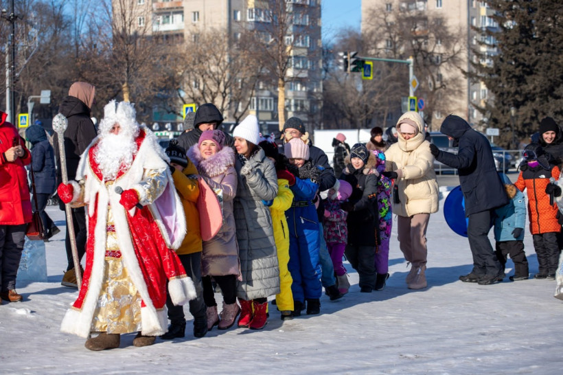 Жители города провели время в компании с Дедом Морозом, Снегурочкой, Скоморохом-затейником, Собакой, Лисой и Зайцем.