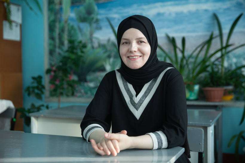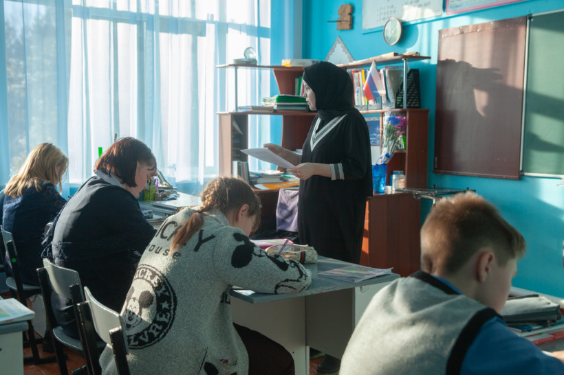 На урок — в хиджабе: как дагестанка из Чечни преподает английский язык в амурском селе