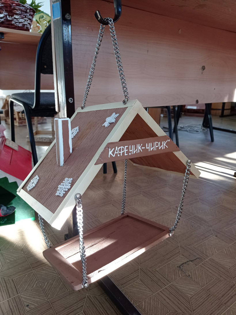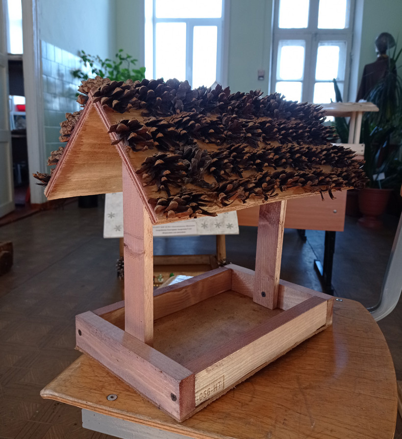 В этой кормушке все прекрасно, кроме одного: ее покрыли лаком и покрасили. Это излишне.