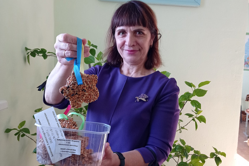 Кроме птичьих столовых, участники мастерили и так называемые валентинки для птиц — полностью съедобные кормушки. Их делают из кормовой смеси, скрепленной желатиновым или мучным клейстером. Такой способ подкорма не вредит экологии, ведь после трапезы на ветке, кроме нити, за которую была подвешена валентинка, ничего не остается.