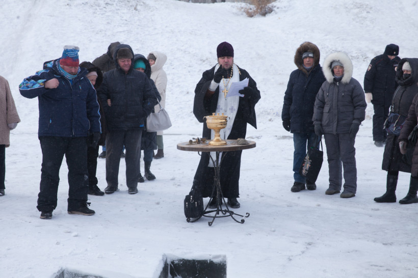 Однако не все приходят на Амурскую, 1, чтобы искупаться. Кто-то зябко поеживается при виде проруби и устремляется к иордани — чтобы набрать освященной в ходе водосвятного молебна.