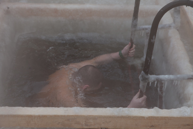— Первый раз окунулся 18 лет назад — как раз на Крещение. С тех пор стал делать это регулярно, стал членом федерации «Аквайс-спорт», участвую в заплывах. Окунаться в прорубь полезно! — говорит Тимофей и без лишних разговоров соглашается окунуться в третий раз, чтобы наш фотокорреспондент запечатлел его на камеру.