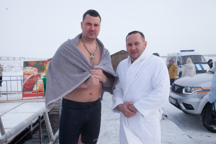 Фоторепортаж «Амурской правды»На градуснике -24, по ощущениям -31. Крещенский день в Благовещенске в этом году выдался не столько морозным, сколько ветреным. Обжигающие порывы особенно ощутимы на открытой местности — на реке Зее в районе Амурской, 1, где традиционно проходят крещенские купания, не простоишь долго даже в теплой одежде. Однако десятки людей выходят на мороз в купальниках и плавках, чтобы соблюсти христианскую традицию и окунуться в купель.