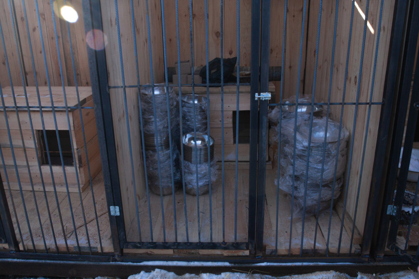 На участке стояли неказистый забор, вольеры с деревяными фасадами и малоприспособленная кухня для приготовления каши. Несмотря на это, собаки не выглядели худыми заморышами: волонтеры старались для своих подопечных создать более-менее сносные условия содержания.