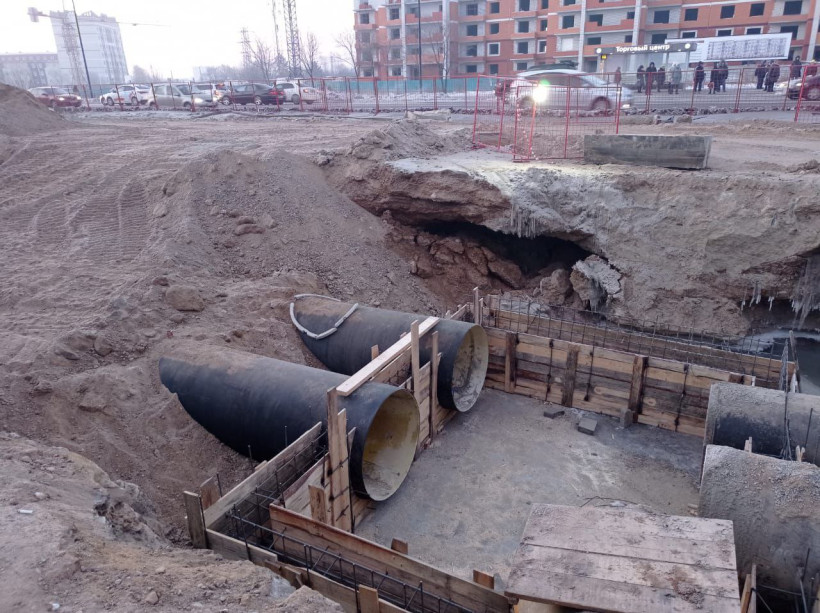До конца января планировалось завершить работы по ливневке, которая собирает дождевую воду. Она проходит рядом с коллектором бытовой канализации. По словам мэра, из-за высокого обводнения участка сроки сместились — предварительно, до марта.