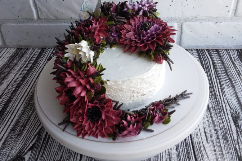 Первое время наша героиня экспериментировала с рецептами, которые есть в открытом доступе, но вскоре возникла потребность повысить уровень профессионального мастерства, и Янина Владимировна приступила к хорошо знакомому делу — обучению, на этот раз в кулинарной онлайн-школе. Особенно ее вдохновили курсы по зефирной флористике. Диаграмма цветка, техника отсадки и окрашивания, способы придания мохнатости лепесткам, тонкости изготовления пестиков и тычинок — это же настоящая наука на грани искусства и ботаники!