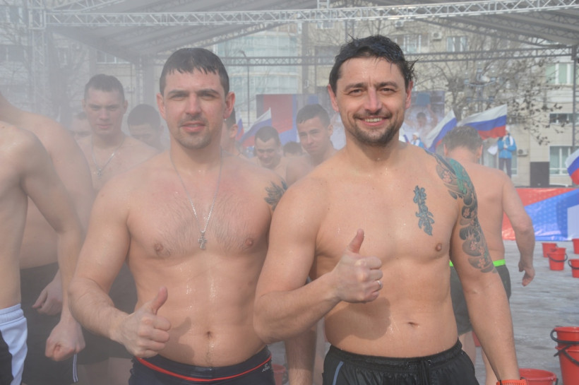 — Мы сегодня этой акцией готовы показать, насколько русский народ силен духом. Для нас не страшны ни ветер, ни мороз, ни холодная вода. Мы сегодня поддерживаем ребят, которые совершают подвиг во имя нашего Отечества, — обратилась к участникам и зрителям депутат Заксобрания Приамурья, генеральный директор ОКЦ Надежда Багрова. — Сегодня они сражаются за наше светлое будущее. Многие сейчас помогают участникам специальной военной операции: кто-то готовит окопные свечи, кто-то собирает гуманитарную помощь. А сегодня мы поддержим их своим подвигом обливания холодной водой и покажем, насколько русский народ непобедим, насколько мы сильны.