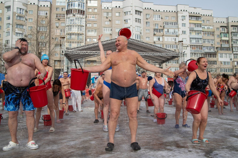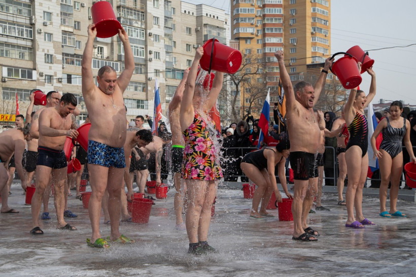 Массовое обливание холодной водой прошло в Благовещенске на площади Общественно-культурного центра в четверг, 16 февраля. В патриотической акции «Мы вместе #Сильные духом» участвовали 145 человек, среди них и министр спорта Амурской области Дмитрий Кутека. Акция посвящена бойцам спецоперации и погибшему в зоне СВО Владимиру Дзинтеру.