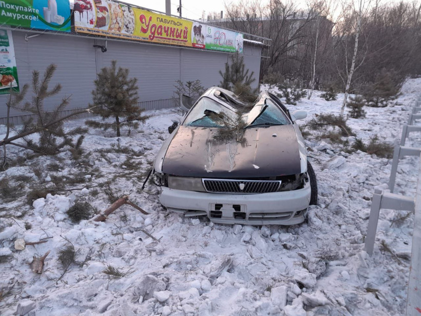 Предварительно, пострадал только автомобильАвтомобильная авария с «перевертышем» произошла ранним утром в воскресенье, 19 февраля в Райчихинске. Иномарка Toyota Chaser не поделила дорогу с леерныим ограждением и вылетела с проезжей части. В результате ДТП у машины сильно измята крыша. По предварительной информации, пострадавших нет.