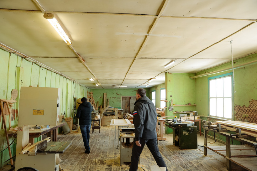 — Мы придумали вот такой чемоданчик, — демонстрирует губернатору столяр небольшой деревянный ящик. — Тут готовые запчасти табурета, клей, и дети собирают его своими руками. Сейчас мы хотим сделать такой же комплект для сбора скворечника. Разрабатываем эскиз деревянной открытки на 8 марта.