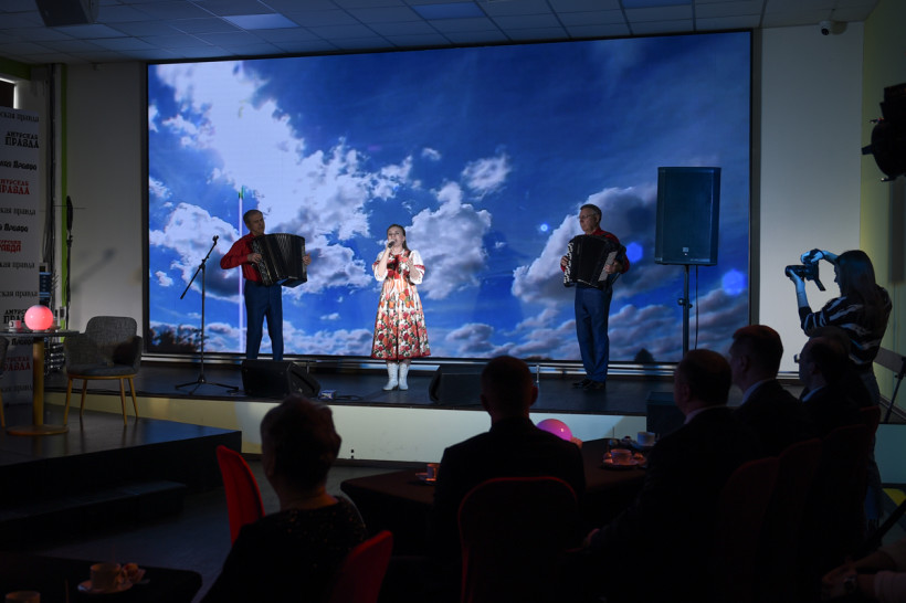 Праздничную программу и уютную атмосферу в «Точке кипения» для «Амурской правды» подготовили наши друзья – Амурская областная филармония. Гендиректор «Амурской правды» поблагодарил руководителя учреждения Ольгу Смирнову и режиссера Светлану Шеломихину.