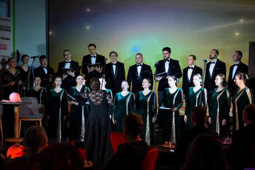 Заключительным аккордом стало исполнение песни «Пусть бегут неуклюже», которой коллектив газеты обязательно поздравляет именинников. Ее исполнил хор «Возрождение», а амурправдисты подпевали профессионалам со сцены.