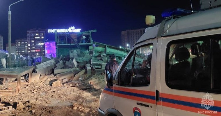 «Полстройки осталось, полстройки рухнуло. Виноват, по ходу, кран, который рядом стоит. С него, по-моему, сорвался груз», — прокомментировал обрушение один из очевидцев, записавший видео.