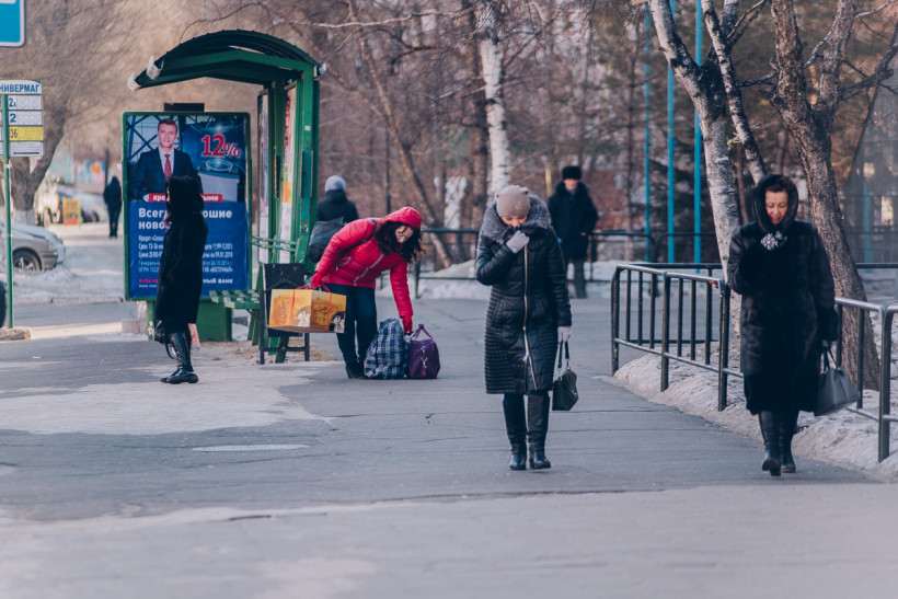 Первым делом отправилась на автовокзал, и зря. Там я гладко влилась в общество других «сумочников», и помогать мне, разумеется, никто не кинулся. Почти у каждого человека было по несколько баулов, превосходящих размерами мой. Я вышла на улицу и потопала сначала к одной остановке, затем к другой. Окружающие были заняты своими делами и мыслями, меня никто не замечал. Наверно, надо было брать несколько сумок, подумала я, обогащенная опытом. С одной я не вызываю жалости, а следовательно — и желания помочь. Баул, между тем, был тяжелым, но каким-то рыхлым и постоянно путался у меня в ногах. С радостью поставила его на землю, как только дошла до второй остановки. Может, на автобус сесть? Пешком с такой ношей далеко не уйдешь. Еще раз, размяв пальцы, берусь за сумки и иду к подъезжающей маршрутке. Люди быстро набиваются в салон через заднюю дверь, подходит моя очередь.