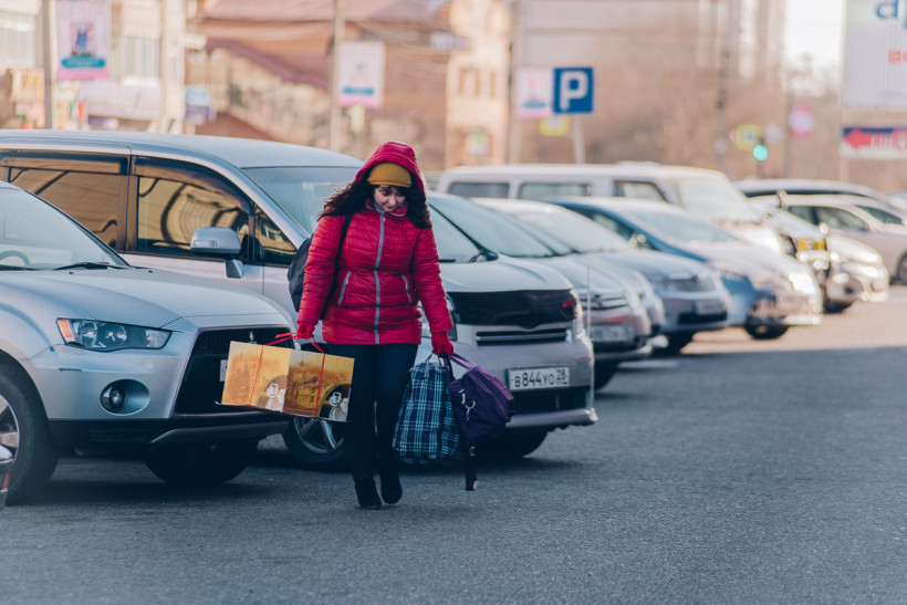 Последним пунктом программы стали два больших торговых центра. Около одного меня проигнорировали с виду мужественные бородатые парни — они предпочли молча наблюдать за моим мучительным передвижением, зато по собственной инициативе открыл и подержал дверь на входе молодой китаец из толпившейся рядом группы туристов. Когда я решила переместиться обратно на стоянку, дверь без лишних слов мне распахнул амурский парень. Он же сам предложил помочь донести вещи до стоянки. В следующем торговом центре я также не осталась один на один с баулом: проявивший смекалку молодой человек сгрузил мои вещи в продуктовую тележку и довез их до пункта назначения.