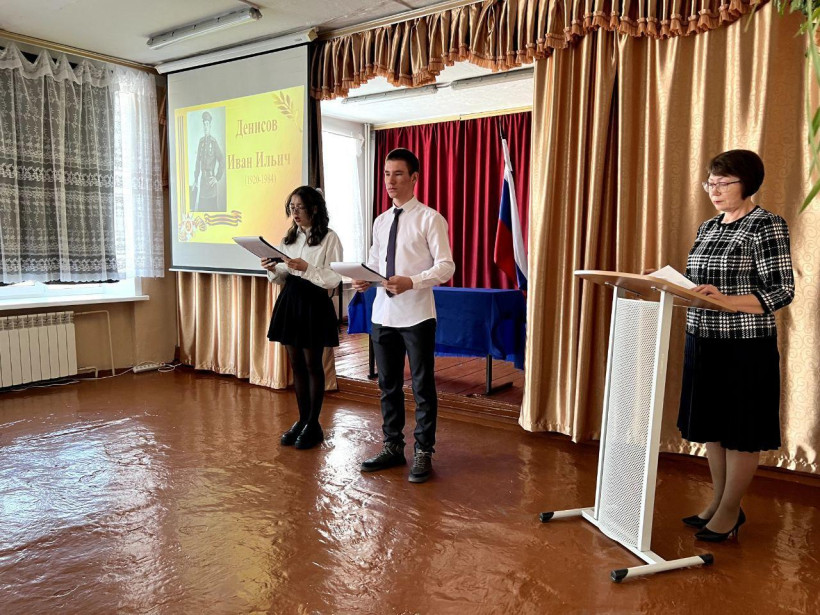 Право открыть парту Героя предоставлено родственникам Ивана Денисова — Татьяне Мурзиной, Татьяне и Валентине Пащенко. Женщины рассказали об Иване Ильиче и его подвиге.
