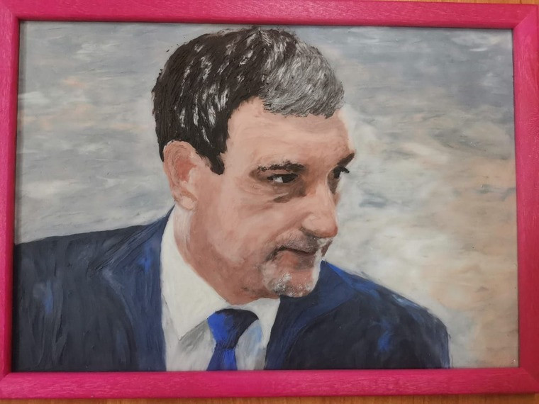 — Идея возникла, когда пришли положения о выставке-конкурсе к 165-летию Амурской области. Для меня самый известный житель нашей области — естественно, губернатор. В свободном доступе много его фотографий, но рисовать с них тяжело. Поэтому в фоторедакторе я перевела один из снимков в рисунок, нарисованный гуашью, — рассказала «Амурской правде» Елена Сальцова. — Распечатала два экземпляра. Один положила под стекло, так как рисую на нем, а второй был в качестве образца, вдруг что-то не так получится и надо будет внести изменения. В качестве фона постаралась изобразить реку Амур.