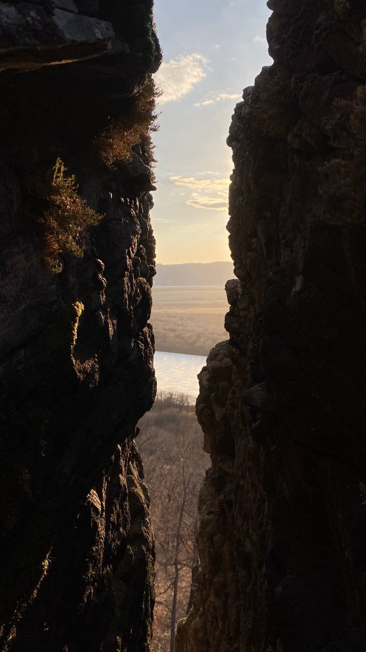 «Нужно было обязательно дождаться заката! — делится подробностями фотосъемки амурчанка. — Снимала и лежа, и сидя, и стоя, вся в траве, кустах, пыли — ведь рядом карьер (АП писала, что здесь, в шаге от уникальных древних скал, добывали камень для строительства дорог). Приходилось взбираться по каменистым выступам, скользить, спускаться. Порой было опасно — вокруг камни, внизу камни. Оступишься — и полетишь вниз!»