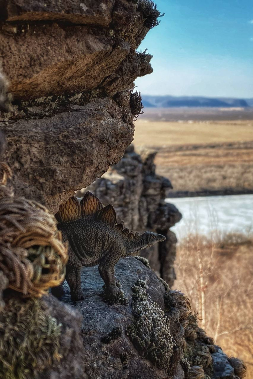 «Я задумалась — значит, здесь ходили динозавры, — продолжает женщина. — И в голове возникла идея немного оживить прошлое. Сначала я подставляла динозавров на снимки скал в фотошопе. А потом выписала фигурки через интернет. Очень хотела Амурозавра, но пока не нашла».