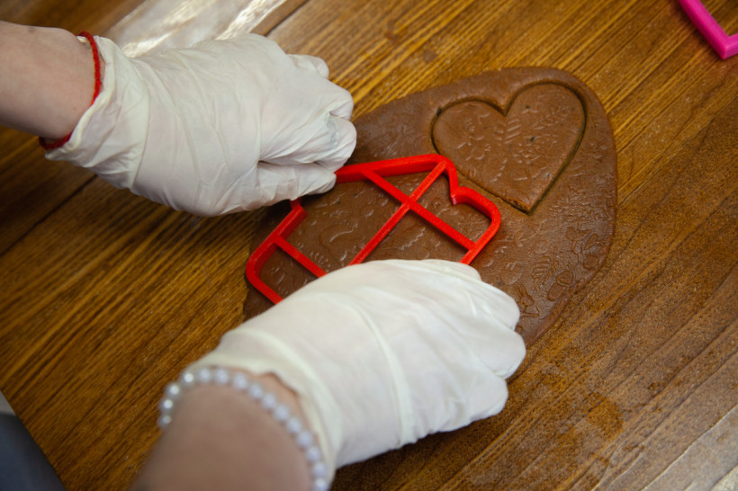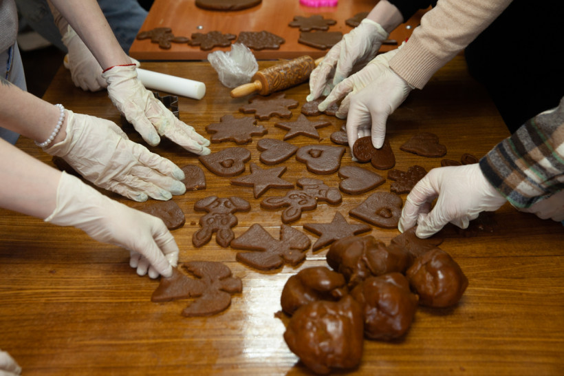 Многие студентки с имбирными пряниками имеют дело впервые. Но тут большой мудрости нет. Главное — потратить время и уже из готового теста вырезать сердечки, звёздочки, зайчиков и ангелов. Муку с яйцами и мёдом замешивают накануне и морозят тесто на ночь. Когда оно оттаивает, в помещении витают ароматы имбиря, корицы, мускатного ореха и гвоздики.