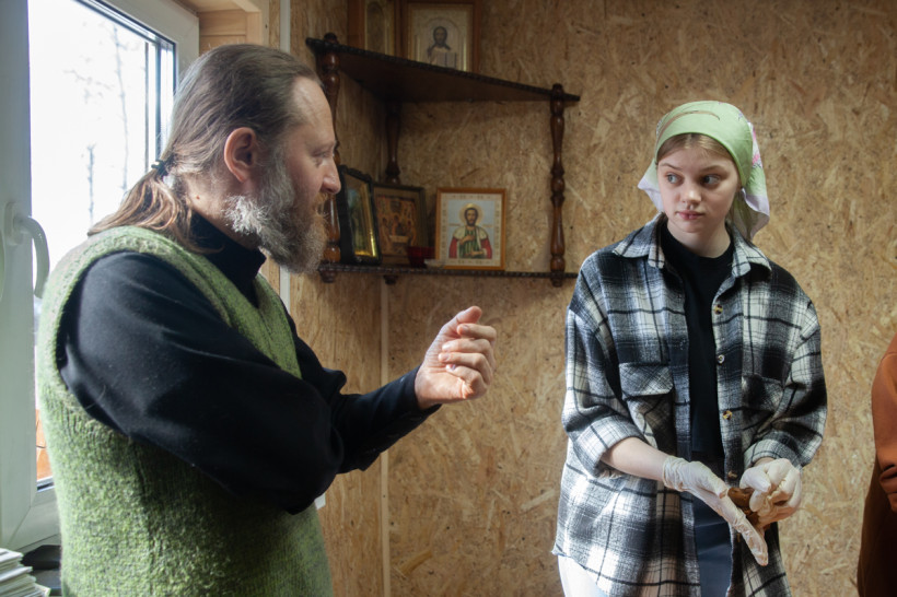 Батюшка нередко заглядывает в трапезную, где выпекают пряники. Беседует с детьми и молодежью, рассказывает об истории храма, об иконах, как правильно себя вести в святом месте, а также о том, для чего они собираются здесь.