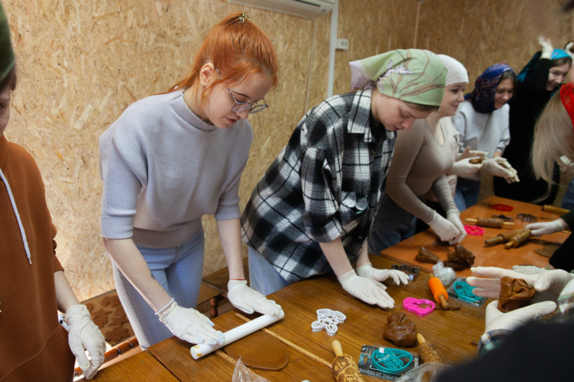 Студенты Благовещенского политехнического колледжа уже не впервые приезжают на выпечку пряников — такое своеобразное занятие по патриотической кулинарии. Преподаватели кинули клич и за 40 минут набрали целый автобус желающих отправиться в Игнатьево. В основном это девушки — будущие экологи и маркшейдеры.