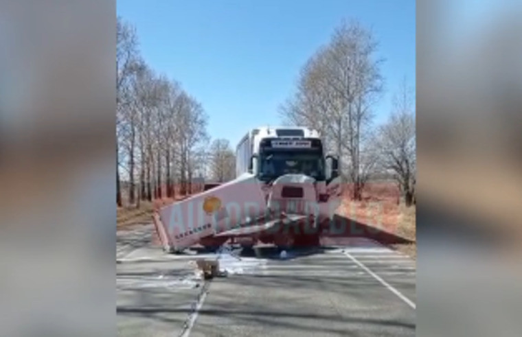 В результате аварии произошел разлив нефтепродуктов. Безопасность всех присутствующих людей обеспечивала пожарная автоцистерна.