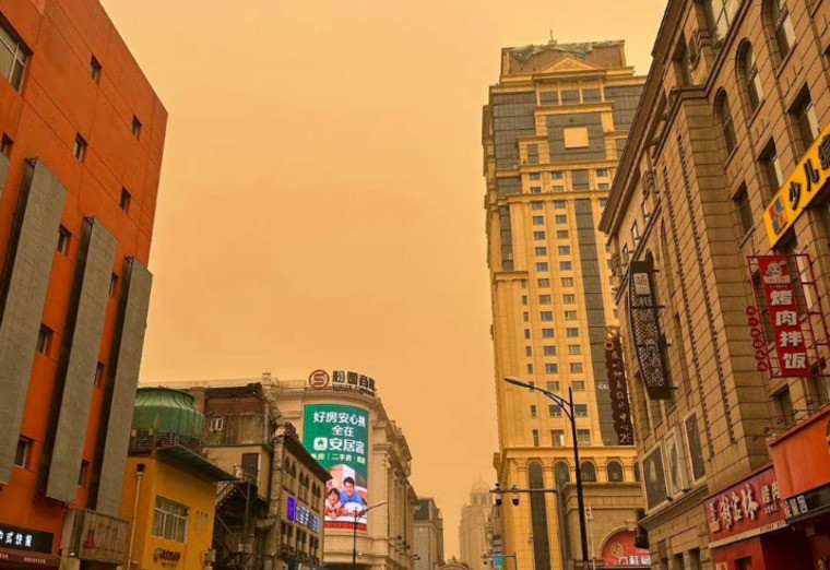 По информации синоптиков, с 14:30 понедельника небо в Харбине окрасилось в желтый цвет, а в воздухе висела взвесь из пыли и песка. Видимость в административном центре провинции Хэйлунцзян снизилась до тысячи метров.
