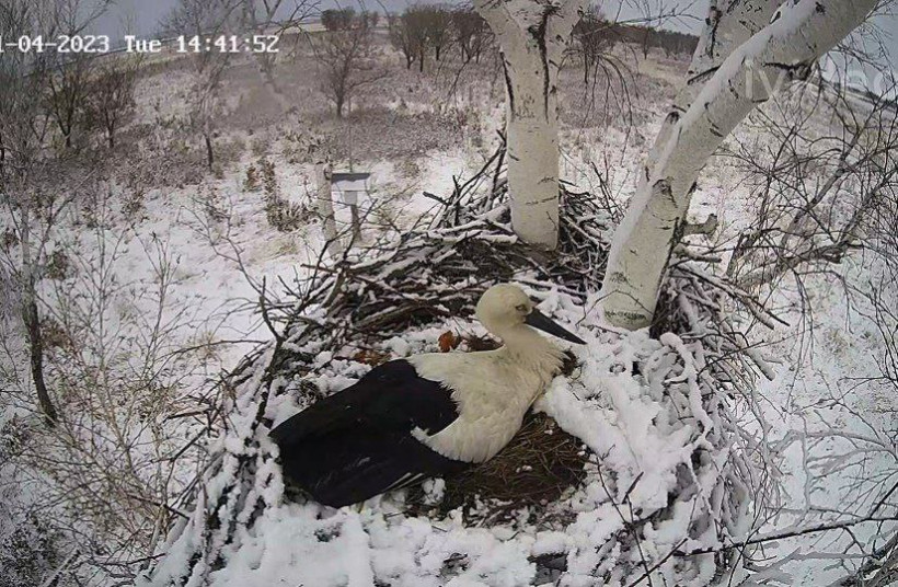 Аистов засыпало снегом. «В прошлом году такая картина была 20 апреля. Но ничего, кладка не пострадала, отмечает эколог-орнитолог Антон Сасин, — все птенцы благополучно вылупились».