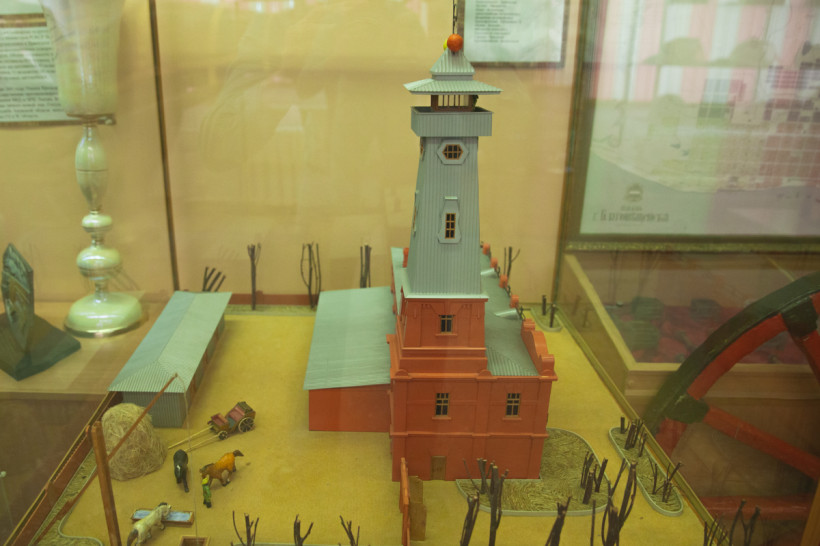 Особая гордость сотрудников музея — жилая комната семьи пожарного середины ХХ века. Каждая ее деталь аутентична, одна из самых ценных — форма профессиональной пожарной охраны начала 60-х годов прошлого века, которая выписана из Кирова. Но, как признается Дмитрий Иванович, сложнее всего было найти обычную чернильницу-непроливайку и простенькую перьевую ручку.