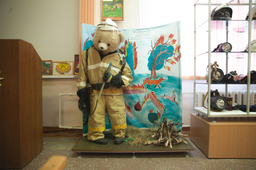 Всех посетителей музея встречает местный талисман — Якубчик. Он назван в честь Николая Тодеушевича Якубчика, который прослужил в амурской пожарной охране 45 лет, пройдя путь от рядового до заместителя начальника управления по пожаротушению. Фото: Владимир Воропаев