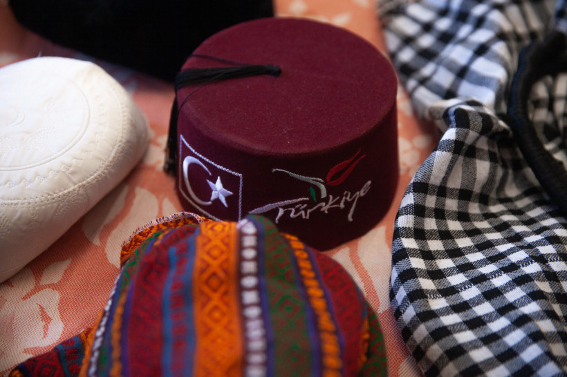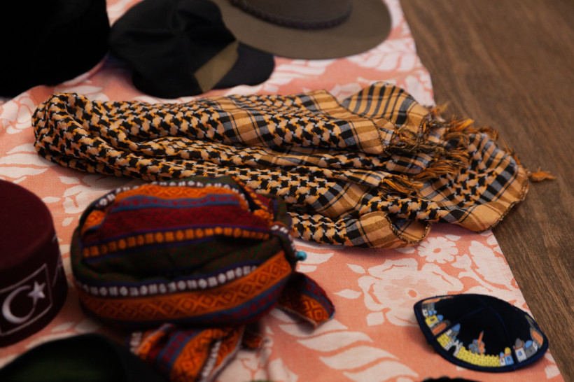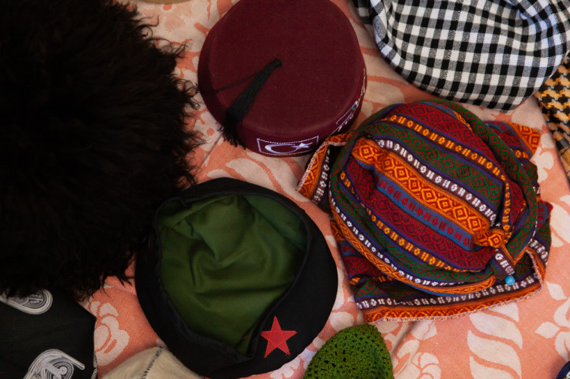 Самые экзотические головные уборы в коллекции — две арафатки. Это арабский квадратный платок с характерным узором. Фото: Владимир Воропаев