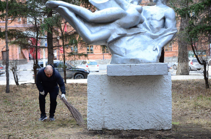 На территории, где установлена скульптурная композиция «Амур и Зея» неравнодушные благовещенцы собрали сухие ветки и бытовой мусор. Молодые горожане подчеркивают, что в этом сквере они убираются каждый год.