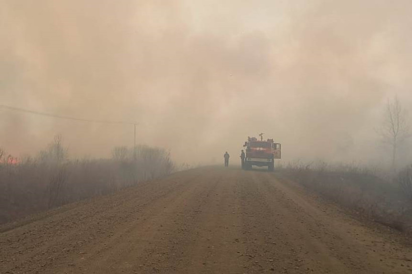 Более 70 человек тушат возгорание в 5 километрах от амурского села Новострополь