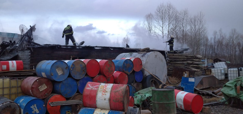 Воскресный пожар в Февральске повредил крышу склада по всей площади. Огнеборцам удалось спасти автомобиль КамАЗ и предотвратить переход огня на емкости с топливом, баллоны и заправочную станцию.
