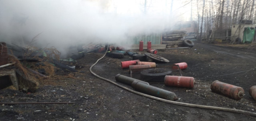 В Февральске из пожара на складе вынесли 25 баллонов с пропаном