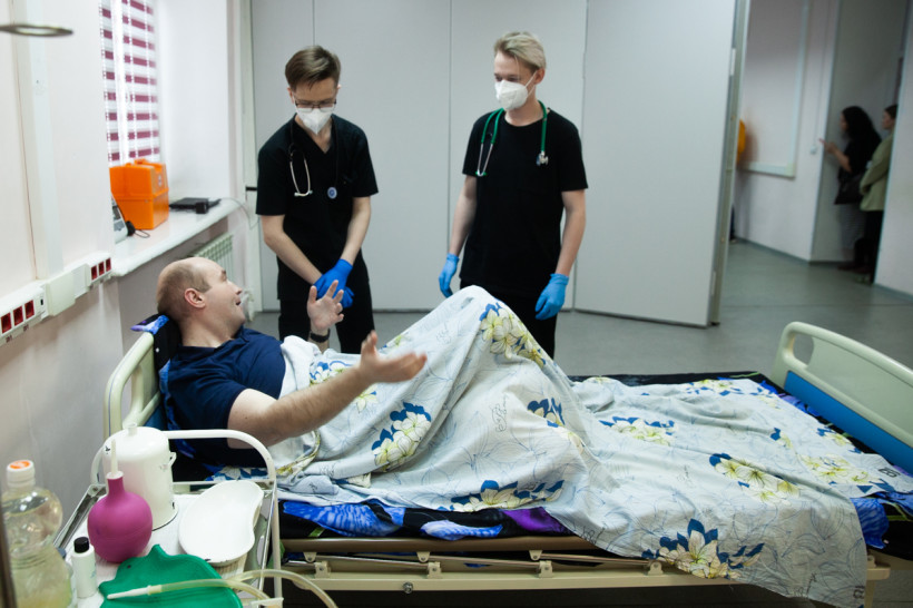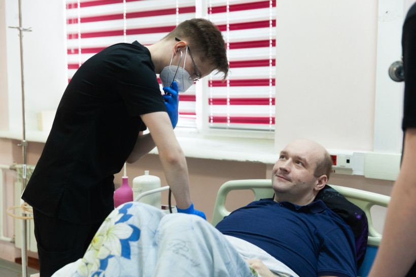 — Иногда мы приглашаем на экзамены людей, которые изображают сложных больных, как этот мужчина, или их эмоциональных родственников, — пояснил ассистент кафедры реанимации Алексей Кучер. — Возможно, со стороны это выглядит комично, но польза от таких тренингов колоссальная.