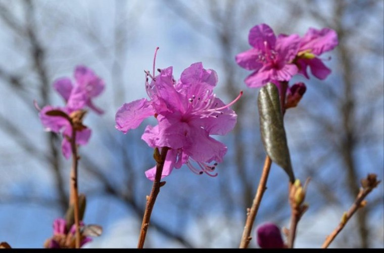 Заметили горожане и цветущий даурский рододендрон, который в народе называют багульником.
