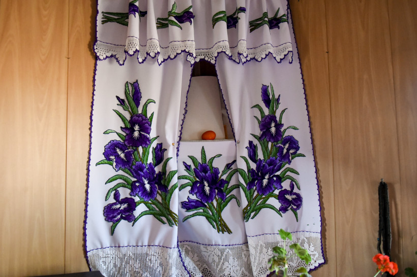 Без платка с косой разрешено ходить только незамужним, а семейные волосы до пят стягивают в жгуты и покрывают. «Привыкаешь, без платка ты, как комола — это корова безрогая», — смеются хозяйки и угощают нас еще теплым пышным пирогом, который Ольга специально испекла к приезду гостей. Алексей Килин, брат Ольги и Надежды, достает домашнюю наливку, приготовленную на винограде. Стол накрыт чисто и просто — крашеные яйца, соленья.