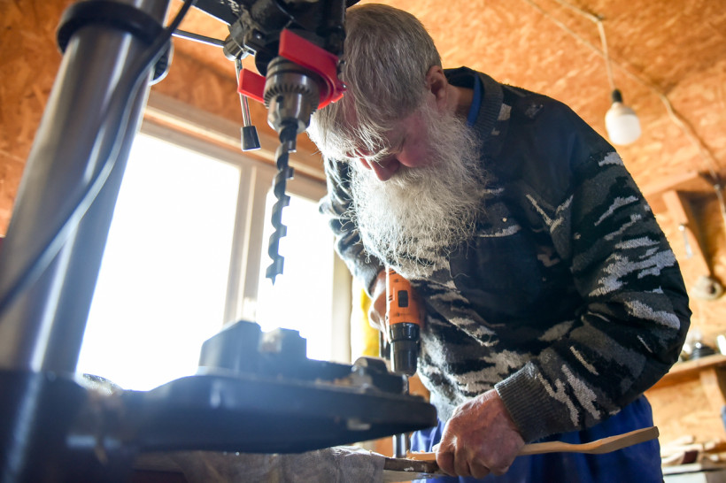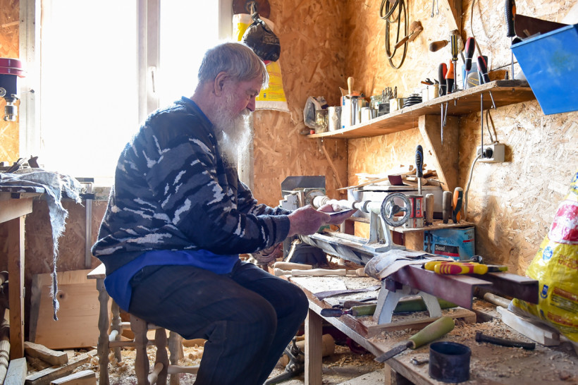 — Задумал всем внукам по стулику сделать — у меня их 58! А правнукам уже не буду, их слишком много — 120, — показывает мастер заготовки. Творения его рук пользуются большим спросом и среди жителей округа — однажды крепкими стульями загрузили целый грузовик.