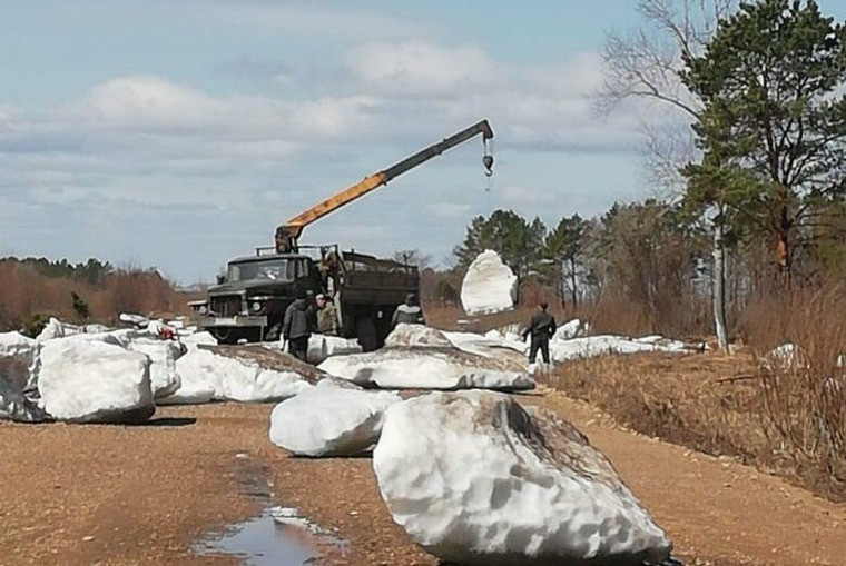 Глыбы льда вынесло на дорогу в Сковородинском округе