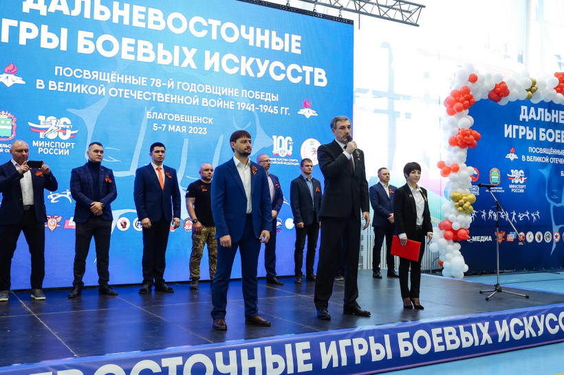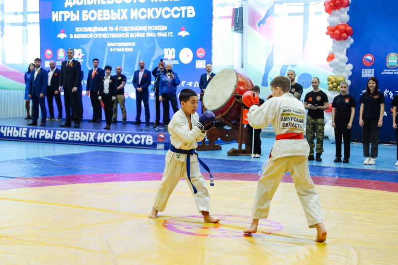 Старт соревнованиям дал губернатор Василий ОрловБолее 1,5 тысячи спортсменов из восьми регионов ДФО приехали в Благовещенск на Дальневосточные игры боевых искусств. Соревнования впервые проходят в столице Амурской области и посвящены 78-й годовщине Победы в Великой Отечественной войне. Старт состязаниям в спорткомплексе «Юность» в пятницу, 5 мая, дал губернатор Василий Орлов. «Нам очень важно сохранить память об этой войне, чтобы дети помнили правду о ней», — сказал глава региона.