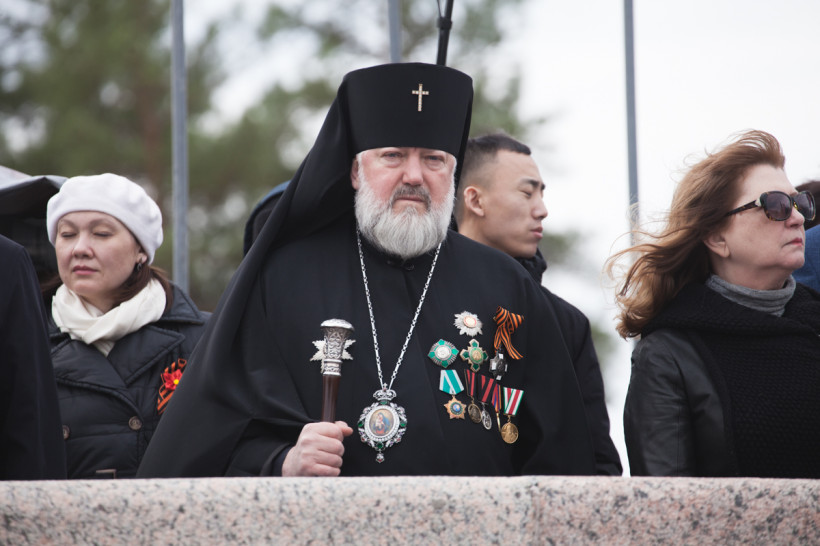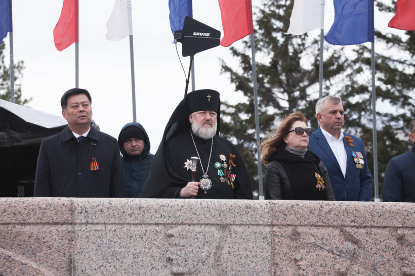 Парад приветствовали первые лица области и города, представители правоохранительных органов и духовенства, на трибуне присутстовали представители делегации Народного Правительства города Хэйхэ. На почетных местах сидели ветераны.