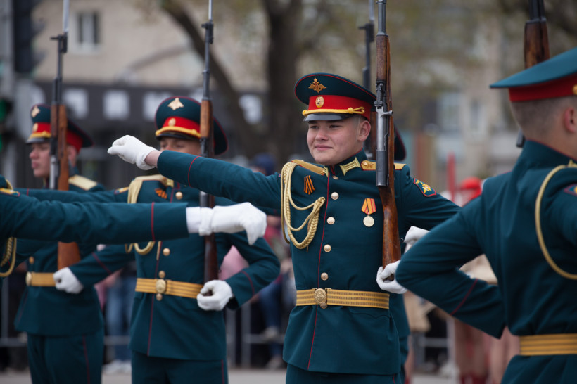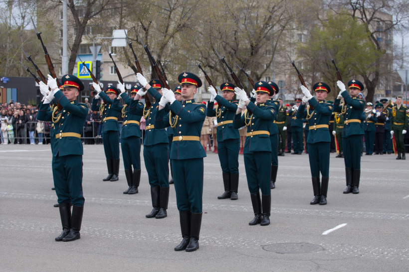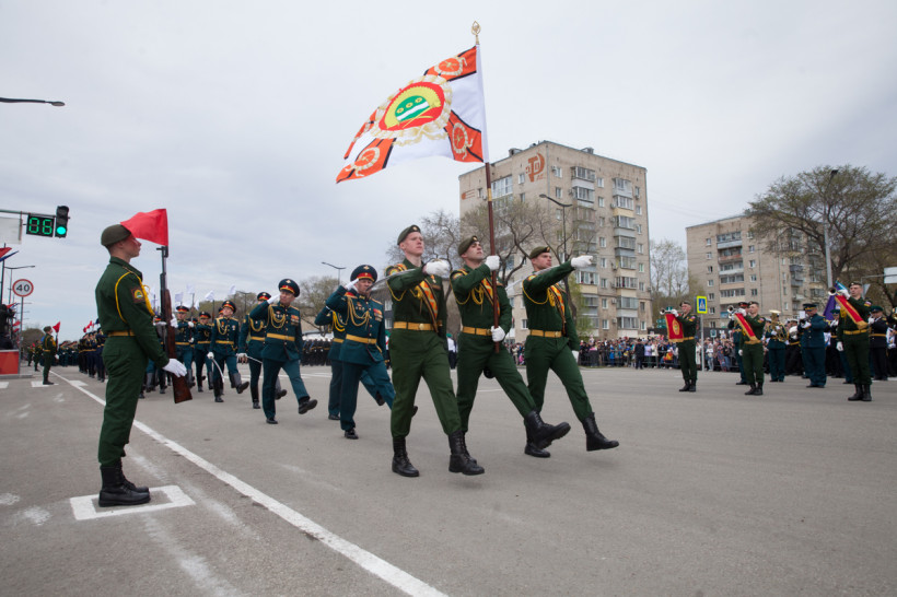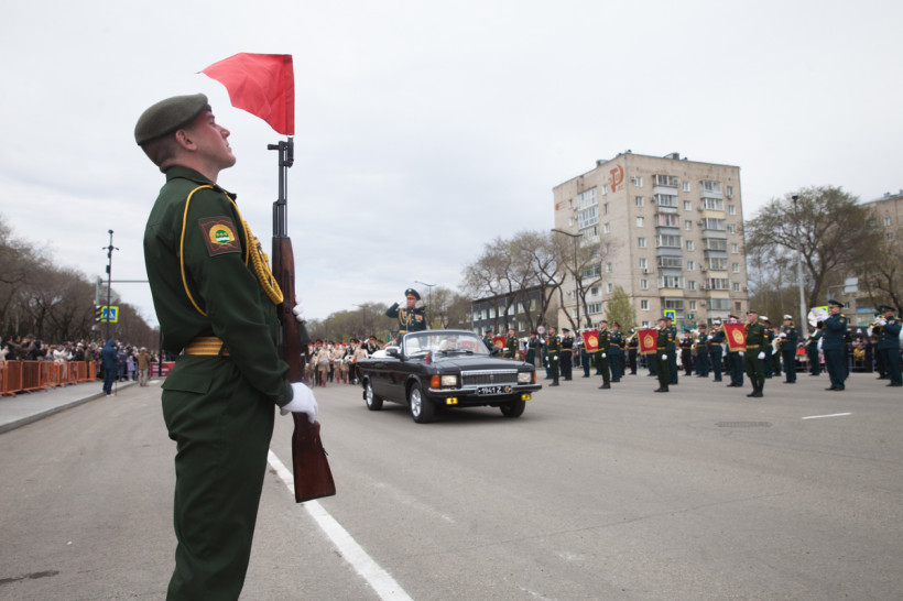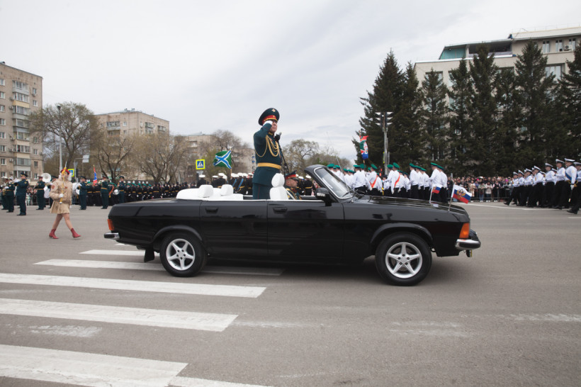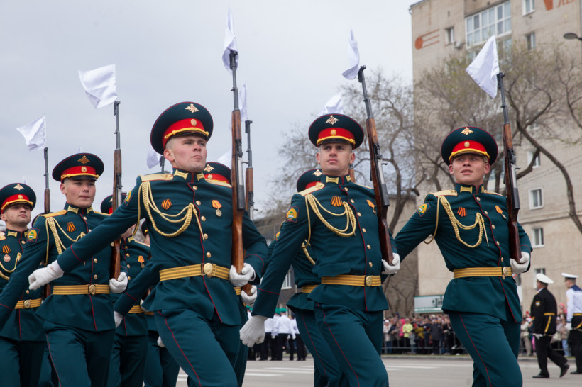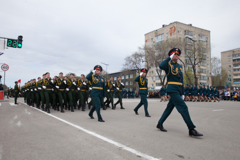 Около двух тысяч человек и несколько десятков единиц техники приняли участие в торжественном шествии войск Благовещенского гарнизона. Парад традиционно прошел по центральной улице Ленина Благовещенска. За ним наблюдали тысячи горожан и гостей амурской столицы. И фотокорреспондент «Амурской правды» Владимир Воропаев.