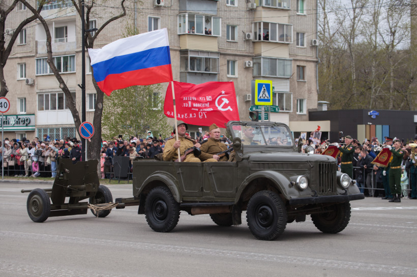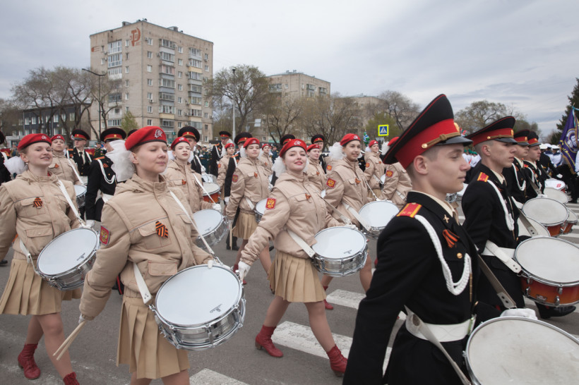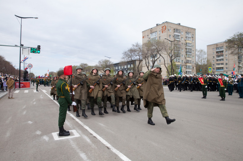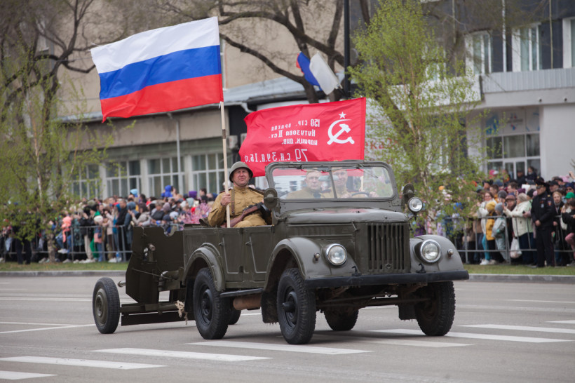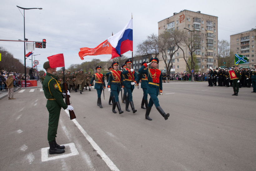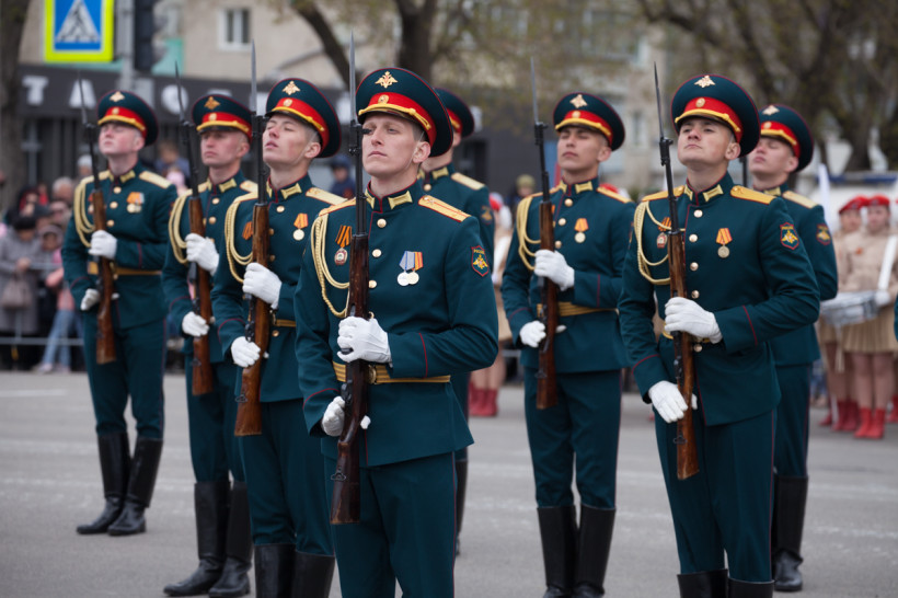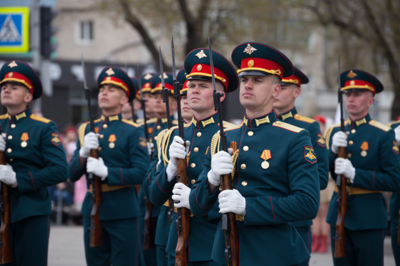 Около двух тысяч человек и несколько десятков единиц техники приняли участие в торжественном шествии войск Благовещенского гарнизона. Парад традиционно прошел по центральной улице Ленина Благовещенска. За ним наблюдали тысячи горожан и гостей амурской столицы. И фотокорреспондент «Амурской правды» Владимир Воропаев.
