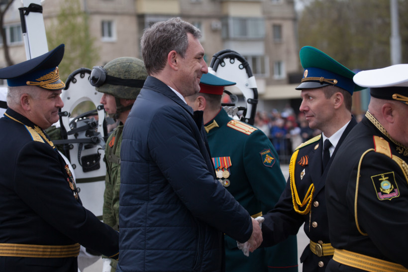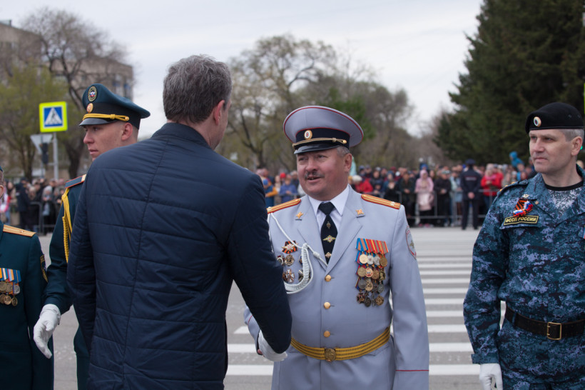 А также судебные приставы, сотрудники службы исполнения и наказаний, МЧС, полиции, сотрудники Пограничного управления ФСБ России, кадеты, юные моряки и юнармейцы.
