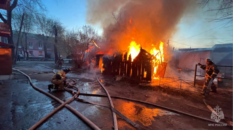Благовещенские пожарные предположили поджог хозпостроек на Шевченко