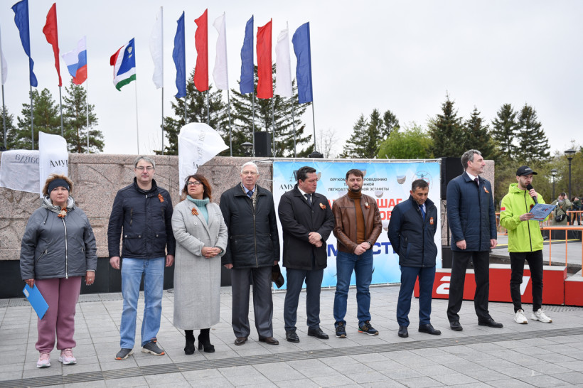 Эстафету много лет проводит команда «Амурской правды» и управления по физкультуре и спорту Благовещенска. И сразу два его бывших руководителя — Геннадий Корсаков и Дмитрий Кутека (уже в должности главы амурского минспорта) — снова на площади перед забегами.