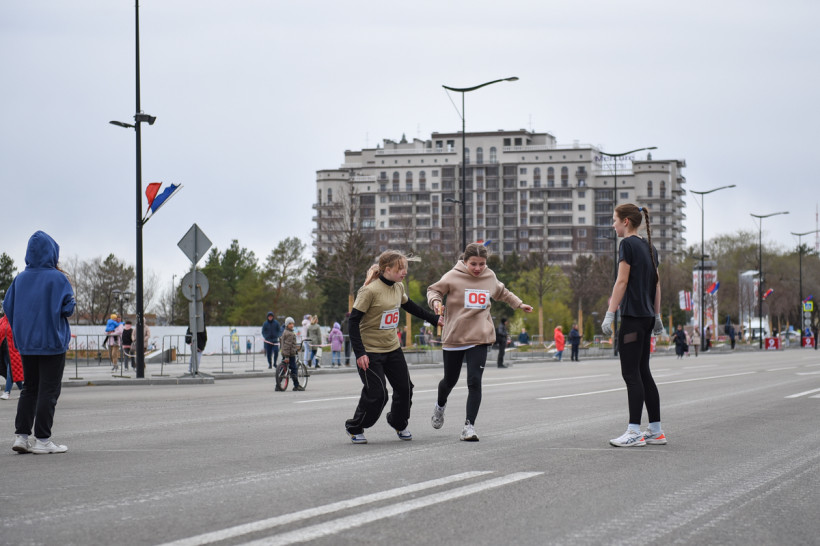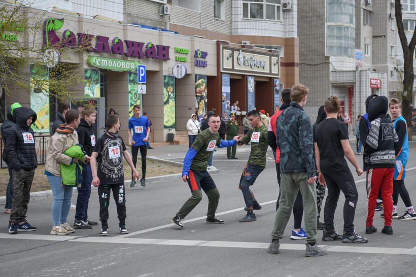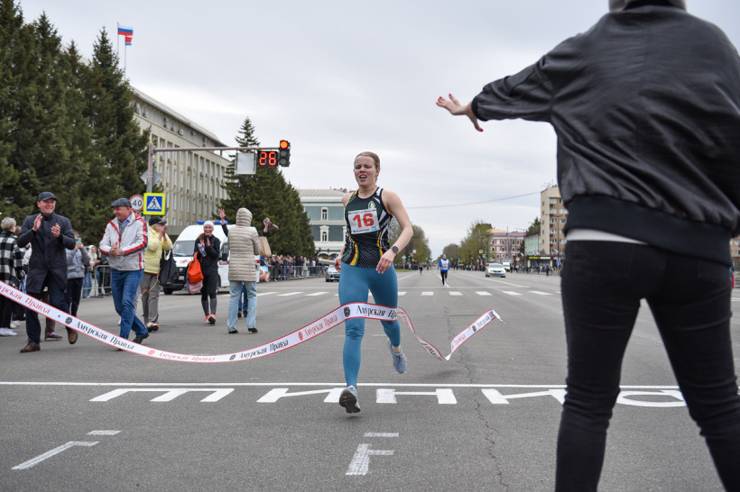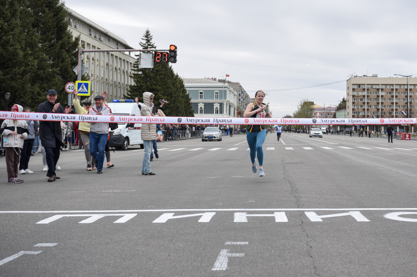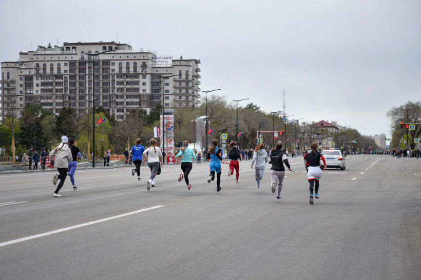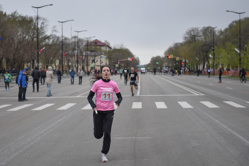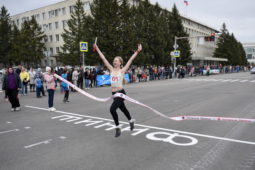Первый старт дали ровно в 12 часов — по главной улице Благовещенска помчались школьницы. Под пронизывающим ветром девчонки бежали мимо площади в маечках и шортах. Ведущий сообщал болельщикам о борьбе на этапах. Однако первой уверенно финишировала команда первой гимназии. «Ура!» — кричали, прыгали и обнимали друг друга девчонки.