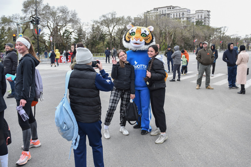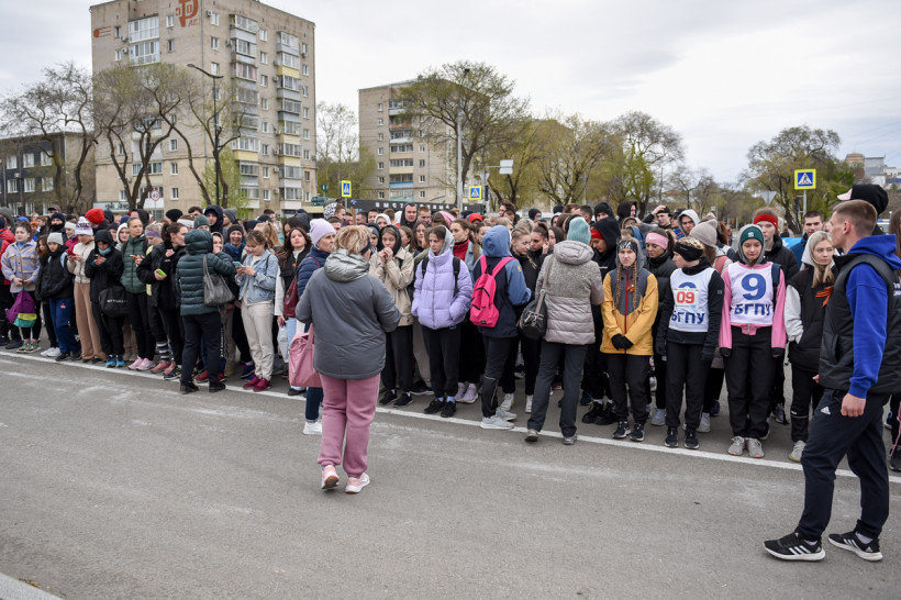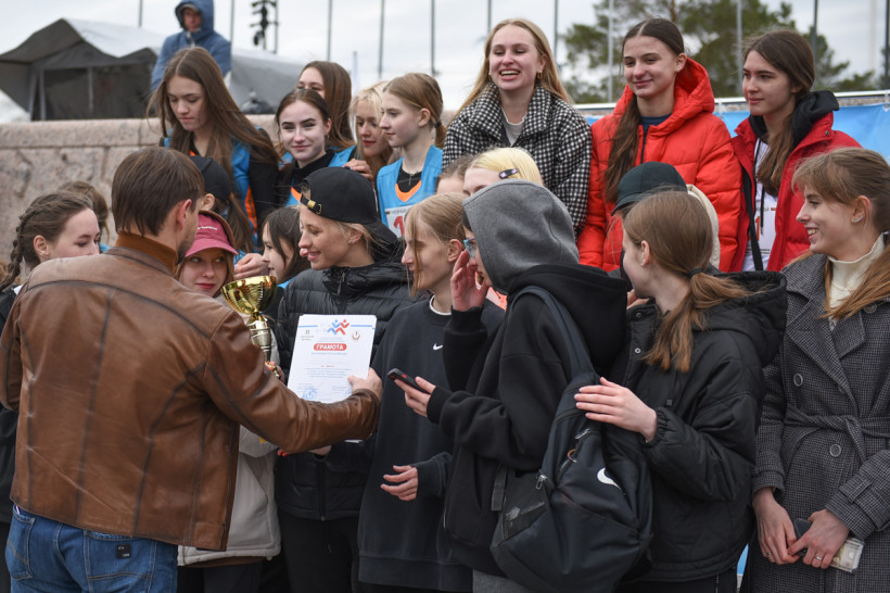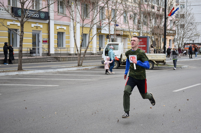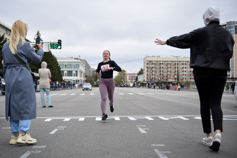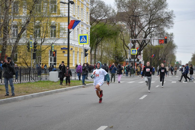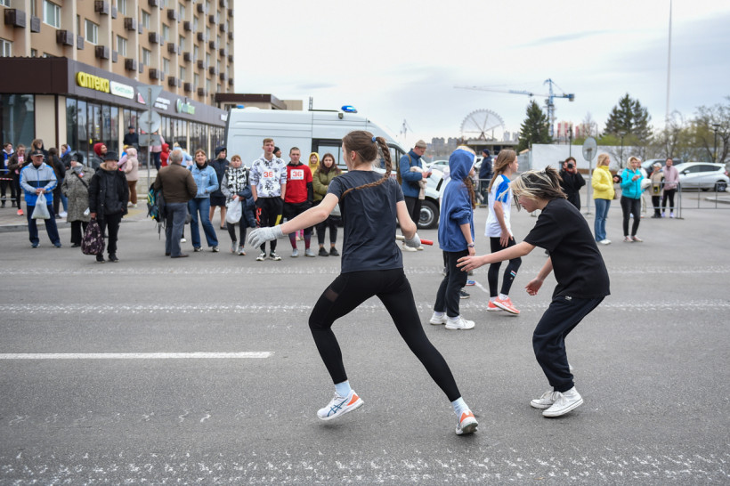 Первый старт дали ровно в 12 часов — по главной улице Благовещенска помчались школьницы. Под пронизывающим ветром девчонки бежали мимо площади в маечках и шортах. Ведущий сообщал болельщикам о борьбе на этапах. Однако первой уверенно финишировала команда первой гимназии. «Ура!» — кричали, прыгали и обнимали друг друга девчонки.